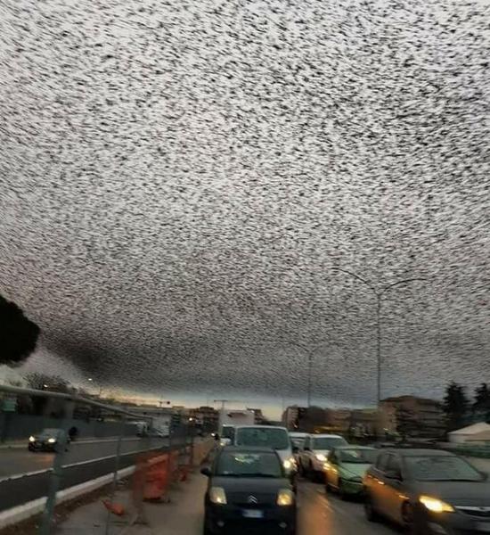 Spomnimo, da so bili v zadnjem stoletju gledalci po vsem svetu navdušeni fantastični film Alfreda Hitchcocka z naslovom – The Birds. V njej so bile prikazane slike motenih ptic in toliko ptic, da so prekrile nebo. Zdaj recimo prebivalci Rima, je videti tako skrivnostno ekološko Ali katastrofa postane resničnost?