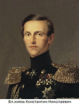 Fotografija s open source Ivan Kutaisov je bil favorit cesarja Pavla I. Ni presenetljivo, da je bil njegov sin Aleksander, star 10 let, zabeležen v gardijskega polka, kjer se je s 15 povzpel v čin polkovnika, z 22 pa do splošno. Zavedajoč se, da niti znanje niti izkušnje ne ustrezajo splošnemu, on ne, Aleksander Kutaisov je potoval v Evropo, kjer je študiral matematiko, utrdba in topništvo. Leta 1812 je bil imenovan za poveljnika. topništvo 1. ruske zahodne vojske pod poveljstvom Barclay de Tolly. Odlikoval se je v bitki pri Smolensku. Umrl ob Borodino, ki vodi napad za odganjanje baterije, ki so jo zasedli Francozi Raevsky. Baterija je bila ravno posuta s trupli. Telo 28-letnika niso mogli najti generala. Veliki knez Konstantin Nikolaj I se je že od otroštva pripravljal na mornariško službo. Ob ladijski praksi je zelo hitro odraščal v vrstah (do ustrezalo je ravni nalog, ki mu jih je dodeljeval cesar), in pri 21 letih prejel čin kot poročno darilo Kontra admiral, kar ustreza činu generalmajorja v pehoti. V ukvarjal se je predvsem z reformo flote. To je on po Krimu vojna je v kratkem času rusko jadralno floto spremenila v pare in oklepni.
