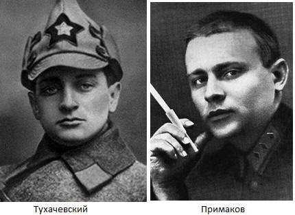 Fotografija s odprti viri V Rdeči armadi so bili mladi poveljniki všeč nikjer veliko. Sergej Lazo je pri 24 letih poveljeval fronti, Tuhačevski pa v 27 s strani vojske, Yakir ob 22 s skupino sil, Primakov ob 23 s korpusom. In čeprav niso bili generali, zaradi odsotnosti takega ranga v Rdeči armadi, glede na pomembnost in velikost nalog, ki jih rešujejo, so povsem možne uvrščen kot generali.