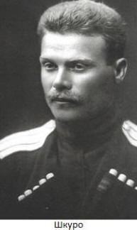 Fotografija s Odprti viri v Beli vojski so napredovali tudi v visoko Vojaške postojanke so nadarjeni samorodniki. Kubanski kozarec Andrej Shkuro je postal general pri 32 letih (in leta 1944 – SS gruppenfuhrer, za ki je bil obešen leta 1947). Ataman Semenov je prejel generala naramnice iz Kolčaka pri 28 letih. Na Krimu je izročil baron Wrangel splošne naramnice 27-letnemu Nikolaju Skoblinu.