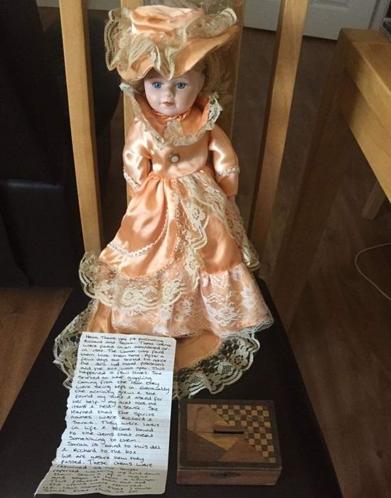 Teta je določila, da so duhovi ljudi z po imenih Richarda in Sarah, ki sta se nekoč zaljubila. Zdaj Sarah je vezana na lutko, Richard pa na predal. Nismo mogli izvedeti v kakšnih okoliščinah je par umrl. Škatlo smo predali s igrača za ljudi, ki jih takšni artefakti zanimajo, ampak oni precenila njihovo neustrašnost. Lutka je nenadoma začela teči naokoli ponoči v njihovem domu so se prestrašili in nam ga vrnili. Glede na Britanskega zakona, moramo zaključiti s potrditvijo, da vse to informacije so čisto zabavne. Ne jamčimo kakršna koli paranormalna aktivnost.