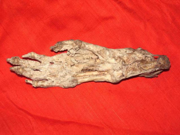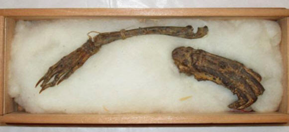 Pokažejo del roke, dolg približno 15 centimetrov in 8-centimetrski del noge bitja, ki v skladu s številne očividce, ki jih najdemo v japonskih in kitajskih rekah in jezera. Toda prav tako izmučen kot Bigfoot živi v gozdovi in gore.