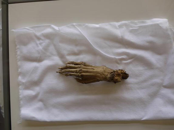Ostanki kappe, ki pripadajo družini Shimazu. Roka je desno izgleda večje noge