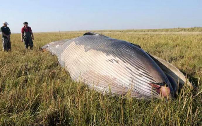Na polju v angleški vasi Skeffling, skoraj kilometer od morja so odkrili truplo mlade samice. Mrtvi kit deset metrov mirno leži na travi, medtem ko okoli njega ne niso bile najdene sledi transporta.