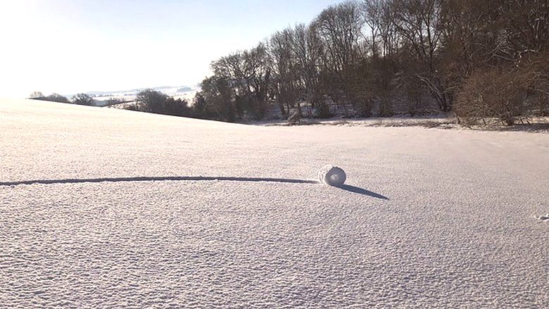 Ta neverjeten naravni pojav smo videli in posneli na fotografiji. Gozdar Brian Bayliss, ki živi v Wiltshireu. Gremo ven dni zjutraj na polju je bil moški dobesedno obupan: na ravni na zasneženi površini so se valjali zvitki, zelo podobni balam seno. Sprva je gozdni redar mislil, da nekateri potegavščine, vendar, ko se približamo, niso našli niti ene sledi v snegu, razen tistih, ki so skrivnostne zvitke pustili same.