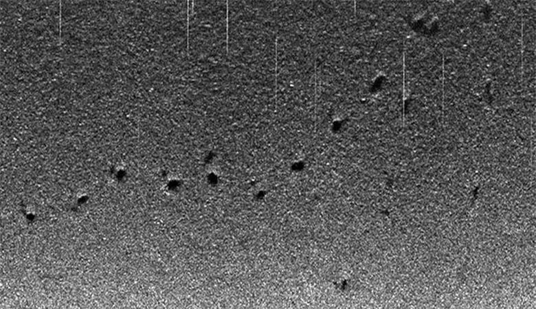 Na začetku so osupljivi znanstveniki predlagali, da je skrivnostno oznake je mogoče razložiti s kakršnimi koli geološkimi procesi, vendar je bila taka hipoteza hitro vržena na stran. Prvič, odtisi med seboj izjemno podobni. In drugič, njihova lokacija sumljivo spominja na rezultat hoje določene dvonoge žival. Skupaj je robot, opremljen s kamero, posnel približno 3.500 odtisi v pesku. Vsaka od njih ima dolžino približno 2,5 metra in globina ne manjša od 13 centimetrov.