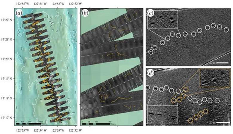 Avtorji potencialno senzacionalne najdbe so bili predstavniki Nacionalni oceanološki center v Southamptonu. Ekipa pod je z vodstvom doktorja Leeja Marsha spustila robota na 4 kilometre globino v tako imenovani coni Clipperton med Mehiko in Havaji Kot ugibate, zaradi ogromnega pritiska nobene velike živali tukaj ne morejo živeti Ker lahko samo ugibajte, kdo ali kaj je pustil pod vodo take sledi …