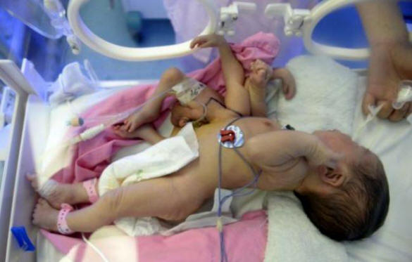 Podoben incident se je z otrokom v Pakistanu zgodil dve leti. nazaj. Po besedah zdravnika na Nacionalnem inštitutu za zdravje otrok v Karačiju je bilo nenormalno rojstvo posledica genetskih bolezen, ki prizadene samo enega dojenčka na milijon. Monozigotični ali enaki dvojčki se oblikujejo iz ene zigote. (eno jajce oplojeno z eno semenčico), v fazi drobljenja razdeljen na dva (ali več) delov. Ksifopag ali sijamski dvojčki se tvorijo med drobljenjem se ne dogaja popolnoma.