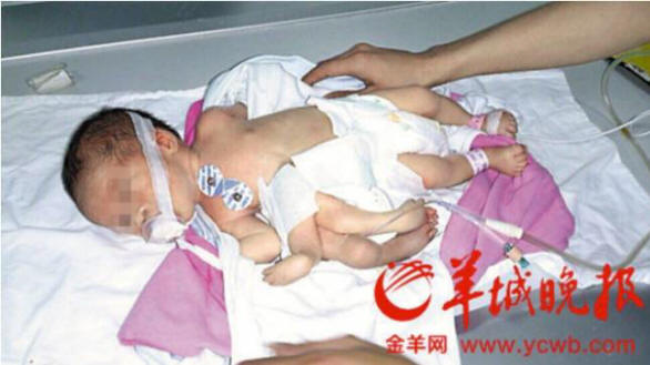 Po besedah glavnega kirurga v otroškem medicinskem domu Guangzhou, dojenčki naj bi bili dvojčki, a eden se je izkazal premalo razvit in se je začel deformirati. Zvezana dvojčka pred operacijo je tehtal nekaj več kot tri kilograme, čeprav je bil odstranjen parazitski plod, ki tehta 600 gramov.