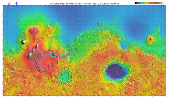 Navadna utopija – zgoraj desno. © NASA Znanstveniki ne izključiti dejstvo, da bi lahko v obdobju Hesperije na Marsu obstajajo in biosfera: v treh marsovskih meteoritih porekla so bile najdene tvorbe, podobne fosilom – ostanki mikroorganizmov. Ravna utopija (Utopia Planitia) – 3500 km nižine na severni polobli Marsa. Glede tega sedel navaden zemljnjak, izstreljen v vesolju 1975 aparat “Viking-2”. Prejel in prenesel na Zemljo panoraman slike in tudi izvedene študije tal – nekatere kemikalije v njem so vsebovale žveplo in klor snovi, ki nastanejo po izhlapevanju morske vode.