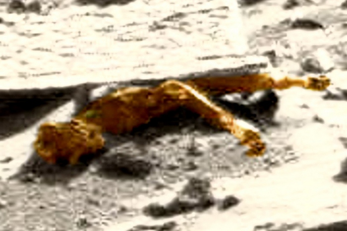 To je točno tisto, kar virtualni arheologi stalno nekaj najdejo na fotografijah, poslanih na Zemljo neumorno Marsovski trdi delavec – Rover Suriosity. Njihova naslednja “Arheološka” najdba je bilo okamenelo truplo humanoida.