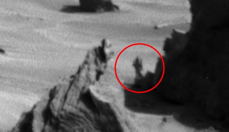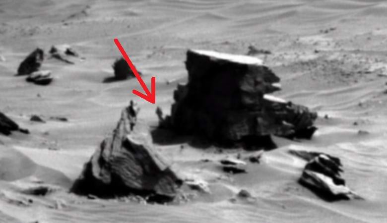 Poleg tega strokovnjaki trdijo, da je v rokah tega tujec je nekakšno orožje. Črna antropomorfna silhueta domnevno pokukati izza kamna in opazovati roverja.