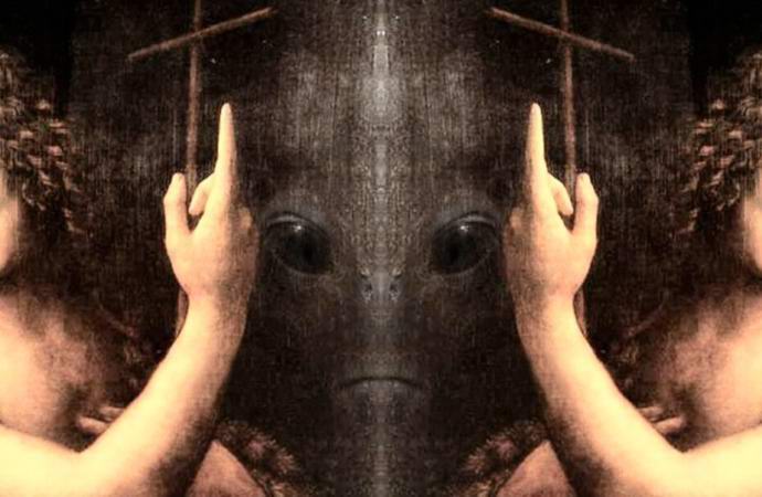 Številni teoretiki zarote verjamejo, da nas vesoljci obiščejo planeta od antičnih časov, in informacije o obiskih “zelenih mož” na Zemljo bi nam lahko rešili predniki. Leonardo da Vinci je bil eden najbolj intelektualno razvitih in naprednih ljudi svojega časa, zato je mogoče, da je prevzel dolžnost, da ljudem prihodnosti povedo svoja opažanja o predstavniki nezemeljske civilizacije. Rimskokatoliška cerkev mu ne bi dovolil, da bi o tem odprto spregovoril, zato se je zatekel tak trik.