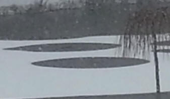 Ti nenavadni krogi se pojavljajo tudi na snegu ali ledu nerazumljivi, kot njihovi kolegi, ki se pojavljajo na poljih. Ta pojav je bil ustreljen na ribniku v Edenu (predmestje New Yorka). Lokalno stanovalka Peggy Gervais je nenadoma opazila, kako na površini v ledu se je pojavil majhen ribnik, ki se nahaja ob njeni hiši popolnoma enakomerno kroži.