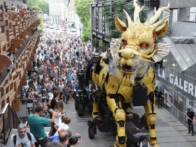 Velikanski zmaj, ki se je pojavil na francoskih ulicah Mesto Nantes seveda ni resnično, ampak mehanično. Vendar pa pogled na tak čudež tehnologije je prišlo zagotovo veliko prebivalcev vzel otroke s seboj.