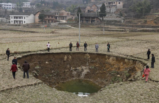 Januarja 2013 je del riževega polja v kitajski provinci Hainan je padel v tla. Prejšnje štiri mesece v okraju Zgodilo se je približno 20 takšnih incidentov.