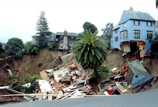 V to jamo (18 m globoko, 60 m dolgo in 45 m široko) leta 1995 Dve hiši v modnem območju San Francisca sta propadli.