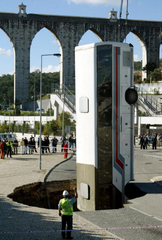 Leta 2003 so morali reševalci izvleči avtobus pomoč žerjava, potem ko je nenadoma padel pod zemljo ena od ulic Lizbone (Portugalska).