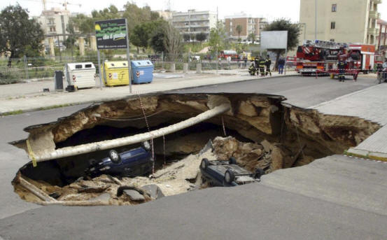 Marca 2007 je v italijanskem mestu Gallipoli cesta propadla v mrežo podzemnih jam pod njim.