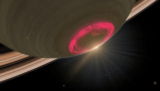 Opazovanje je izvedel NASA – Hubble vesoljski teleskop. Znanstveniki so najprej opazili aurora na Saturnu leta 1979. Desetletja kasneje, te utripajoči trakovi svetlobe še vedno očarajo. V videu s stranske točke pogled predstavlja severni in južni strop Saturna, opazovanje ki ga izvaja NASA Hubble vesoljski teleskop. Po eni strani oni presenetljivo visoko in se dvigajo na stotine kilometrov nad drogove planet. In za razliko od Zemlje, kjer se svetle luči končajo Nekaj ur kasneje se lahko aurora na Saturnu sveti čez nekaj dni. Infrardeči pasovi tvorijo obroče nad južnim polarnim območjem Saturna v običajnih barvah slike.