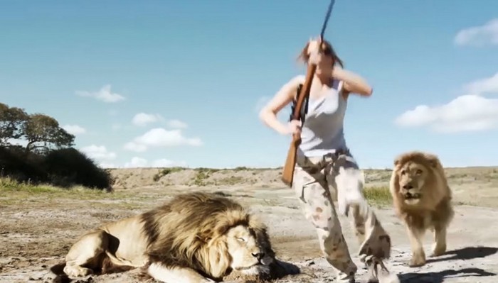 Grozni plenilec niti ne plazi, ampak preprosto zmanjka, ker hrib in gre k lovci, ki so tako strastni pri streljanju, da leva opazijo prepozno. In zato njihovi poskusi pobega, streljanje je bilo že neuporabno. Tudi iz tega videa lahko razumeti, da nesrečnim lovcem ni uspelo pobegniti. Podporniki reinkarnacije v takšnem primeru bi pomenile, da je to dobra lekcija za izgubljene duše in v poznejših inkarnacijah, ki jih je raztrgal lev moški in ženska se verjetno bojita lova kot ognja in ne upali ubiti celo majhno ptico …