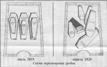 Župnik z več spoštovanimi stanovalci skrbno pregledal kripto za skrivne prehode, pregledal vsako razpoko – skrivne luknje ni bilo mogoče najti. Krste postavljena na mesto, kripto je bila prekrita s pečjo.