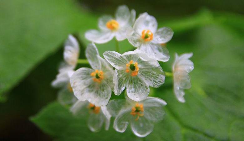 Siva bifolija, ki raste na ruskem Sahalinu in v severnih delih Japonske je težko imenovati najlepšo rožo v svet in mnogi ga gredo mimo, ignorirajo belce zaobljeni cvetni listi. Vendar ima ta rastlina eno nenavadna in zelo zanimiva lastnost. Postanejo njegovi cvetni listi kot steklo, torej skoraj prozorno v dežju ali takoj po tem, ko je dobil vodo na njih. Navadni ljudje, Japonci pogosto Greyjev dvojni list se imenuje “rožnato okostje.”