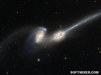 Fotografija s open source Pravzaprav to ni čisto kvadrat. Če ti natančno poglejte sliko, boste opazili, da v čez obliko tvorita dva stožca v točki stik. Toda potem spet ni veliko stožcev na nočnem nebu. Meglica urnega stekla se sveti zelo svetlo, kot v v njenem središču je svetla zvezda – kamor se dotakne stožci. Možno je, da je ta zvezda eksplodirala in postala supernova, zaradi česar postanejo obroči na dnu stožcev svetijo bolj intenzivno. Trki galaksij V vesolju, vse nenehno se giblje – v orbiti, okoli svoje osi ali samo hitri skozi vesolje. Zaradi tega – in zahvaljujoč neverjetni moči privlačnost – galaksije trčijo nenehno. Morda niste presenečenje – samo poglejte Luno in razumete, da vesolje ljubi da majhne stvari držijo blizu velikih. Ko dve galaksiji vsebuje več milijard zvezd, lokalno katastrofa, kajne?