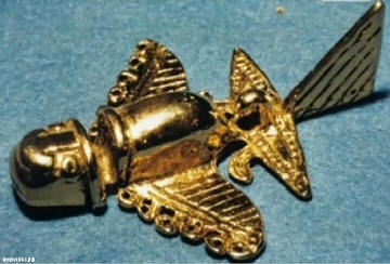 Zlato, ki ga najdemo v Kolumbiji, se organsko prilega tej teoriji. figure tolim Indijancev, navzven zelo spominjajo na letala. Indijanci so letalo res videli in poskusili poustvariti njihov videz. Pravih letal seveda ni bilo niti tako zastrašujoče glave krokodil niti zapleteni vzorci stavbe. Indijci so, ki izdelujejo figure, vanje prinesli elemente njihova kultura. Toda celotna konfiguracija naprav je precej prenesena zagotovo.