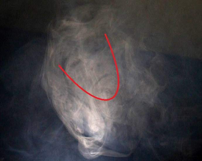 Ujeta v neosvetljeni glavni dvorani stare zgradbe, Williamson je vklopil prenosni generator dima z LED svetilko, in sobo se je kmalu napolnila megla. Potem je Stuart vzel svoje kamera je začela fotografirati naključne fotografije. Bilo je ravno to specialistična ideja – ujeti nekaj nenavadnega v belih klubih dim, – in on menda ni izgubil. Če upoštevamo naknadno prejel slike, je strokovnjak presenečeno našel na enem od neverjetno čist ženski obraz, oblikovan v temi iz megla.