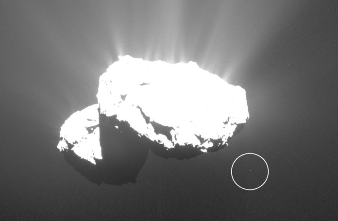 Med svojo raziskovalno misijo vesoljska sonda Rosetta fotografiral neznani predmet, ki se je dvignil s površine kometa Churyumova-Gerasimenko. Ta predmet so znanstveniki opazili na slikah. nekaj mesecev po kometu mimo najbližjega kaže na sonce svoje orbite 13. avgusta 2015.