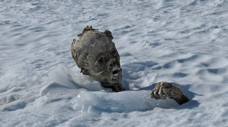 Policija tudi ugotavlja, da je med stopljenimi mumijami v Alpah bodo umrli ljudje zaradi letalskih nesreč, ki jih je bilo v zadnjih sto letih veliko. Zato se danes vozite tukaj ni postalo toliko nevarno, kot je bilo grozno. Vendar pa nekateri turisti v tem najdejo določen čar, plezalci pa radi je znano, da se tega sploh ne dotika – imajo popolnoma drugačne naloge, ki meji na fanatizem. Dovolj je, da se spomnimo Everest, ki je dobesedno posut s trupli umrlih plezalcev, vendar plezalci sami želijo osvojiti znameniti vrh svet, ne bodite pozorni niti na to …