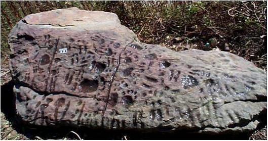 Na primer kamen, ki so ga našli v Severni Karolini habitat Indijancev Cherokee, ki je vklesal “odtise” medvedov in jelen:
