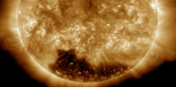 Foto: Nasi so napovedali strokovnjaki NASE zaznavanje ogromnega temnega območja v sončni koroni. Posnetek Objavljeno je sonce, ki prikazuje ogromno koronsko luknjo o uradnem računu ameriškega vesoljskega oddelka v storitev mikroblogov Twitter. Temno območje se nahaja na območju zvezde južnega pola. Razlog za pojav koronalnih lukenj na Sonce je znanstvenikom ostalo skrivnost. Vendar je znano, da zmorejo opazili z leti, hkrati pa dosegali velikanske razsežnosti. Avtor Po mnenju strokovnjakov sončni veter priteka iz koronalnih lukenj so glavni vzrok za pojav na našem planetu magnetnih nevihte, pa tudi videz severnih luči.