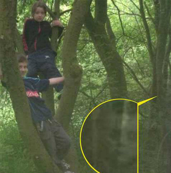 Gledanje fotografij z družinskega izleta v naravo, mati dva otroka sta bila šokirana, ko sta našla poleg plezanja naprej drevo na otrokovem obrazu duha.