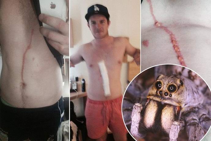 Tri dni se je pajek pod kožo Avstralca podal istočasno ki se tam širi ne nevaren, a izjemno pekoč strup. Lahko samo uganiti, do katerih posledic bi lahko prišlo, če bi mladenič ni pravočasno poiskal pomoči zdravnikov.