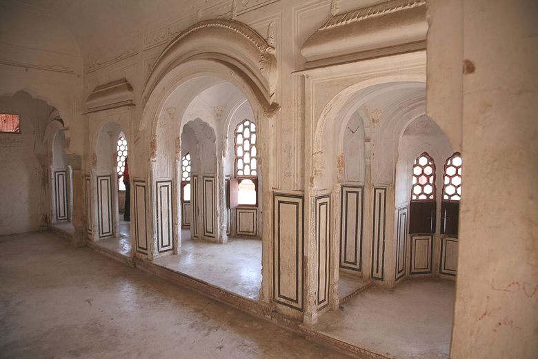 In dvig v to stavbo ni brez zanimanja, ker višje če se povzpnete po palači, več lepot se bo odprlo pred vami. Zgornje sobe, okrašene z vitraži, ki se ne vidijo z ulice, namenjena najvplivnejšim in najljubšim indijskim ženam knezi.