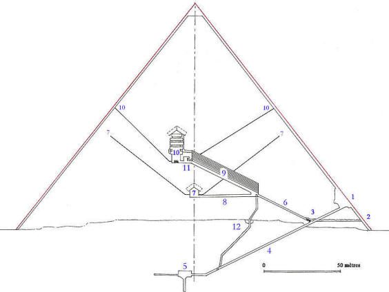 Če pogledamo načrt odseka piramide Cheops, lahko to ugotovimo danes niso odkrili zgornje molitvene sobe mastabe (ne več kot 15 metrov višine) se nahaja v središču, tik spodaj srednja grobna komora (7). Če seveda na začetek gradnja drugega faraona njegove piramide nad mastabo, ona niso uničeni, zdrobljeni, oropani in ohranjeni v količini.