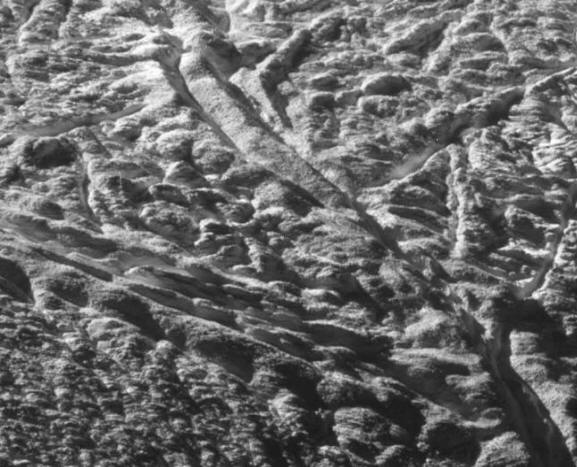 Kmalu pa zaposleni v Nasi iz Jet Laboratorija gibi z začudenjem odkrili skrivnostne vzporedne razpoke, “opraskan” po ledeni površini planetoida. Od teh čudnih nastale so tvorbe, imenovane “tiger trakovi” 500 km visoko, primerljivo s premerom samega Enceladusa, močne plinske ledene fontane.