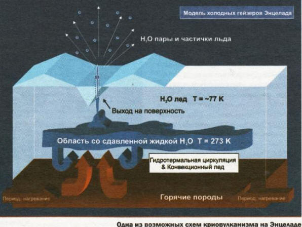 Ko so odkrili ledene gejzirje Enceladusa, so se pojavili popolno presenečenje za planetologe, saj vulkansko aktivnost na satelitu s premerom le petsto kilometrov v nasprotju s teorijo. Vsekakor je tako majhen planetoid že dolgo že naj bi se ohladili in zamrznili do najglobljega črevesja.