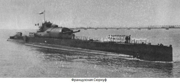 Leta 1929 so Francozi sprožili Surkuf. Na krovu je bilo hangar, v katerem so bila v nesestavljeni obliki shranjena izvidniška letala morskega letala MV.411. Ob montaži je bilo namenjenih 4 minute. Začetek in vzpon na krovu je nosil vse isti žerjav. Pred nastopom leta 1942 Japonska podmornica Surkuf I-400 je ostala največja podmornica čoln na svetu. Kasneje se je v vrstah borila francoska podmornica Zavezniška mornarica, umrla leta 1942.