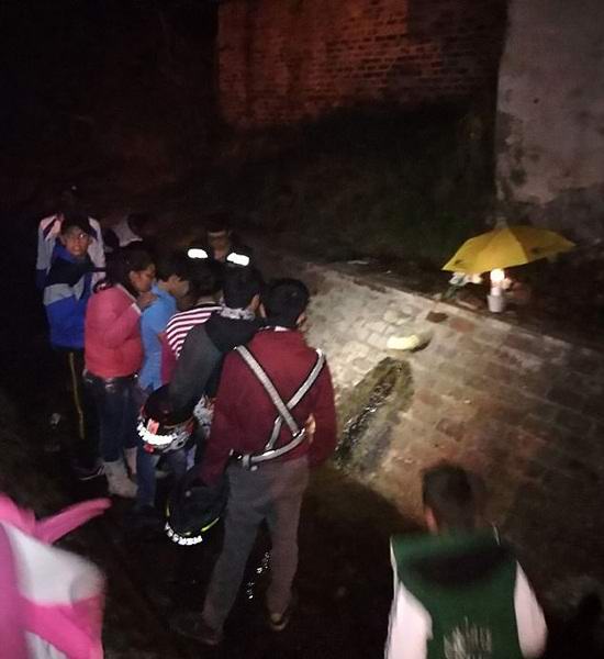 Prvo anomalijo je opazil mali deček, ki je prestopil mostu in zaslišal čuden zvok, kot da bi nekaj živega pljusknilo v vodi. Presenečeni otrok se je spustil do kanala in to videl na opeki zidanje pod cevjo, iz katere se je počasi izlivala voda, je tlelo silhueta Gospe. Mladi kolumbijski se je približal, vzel svojega mobilni telefon in posneli nekaj sten. Na določen v trenutku se mu je nenadoma zdelo, da se je slika premaknila. Fant prestrašen, padel na kolena in začel moliti. Potem je tekel domov, da bi družini povedali, kaj se je zgodilo.