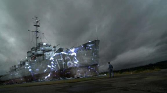 “Ne glede na rezultate eksperimenta v Filadelfiji, on res se je odvijalo v resničnem življenju in se izvajalo Ameriška mornarica leta 1943. Uporablja se za to bojna ladja USS Eldridge. Znanstveniki so želeli narediti to ladjo neviden za radar in ne povsem neviden. Med Poskusne barve se razlikujejo od rdeče do oranžne, rumene in zelena (spomnite se značilnosti, ki so jo zapisale priče poskusa “zelena megla” – opomba. avtor).