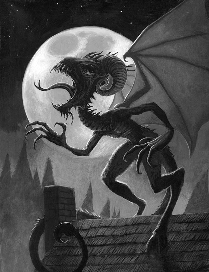 Američan govori o življenju legendarnih bitij številne očividce v borovem gozdu gozdov na jugu država. Ta kriptid je pokončno bitje od 1 do 2 metra s telesom, prekritim s črno dol. Pošast ima podobna krila (podobna netopirjem), težka kopita, bordo oči, ki spominjajo na konjsko glavo, dolg vrat in rogove (obstajajo tudi drugi opisi). Januarja 1909 med približno en teden je približno tisoč ljudi policistom pripovedovalo o srečanjih z grozljiva leteča pošast. Mediji so to obdobje označili za fenomenalno teden, “in hudič iz Jerseyja se je takoj pridružil Američanom in svetu kulture, s čimer je postal najbolj znan kriptid ZDA.