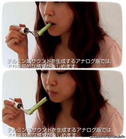 Posodobitev jedilnega pribora so se lotili japonskih znanstvenikov oz. uvedla nove tehnologije v tako banalnih kuhinjskih orodjih kot nož in vilice. Zdaj bodo omenjeni predmeti strogo pozorni gostitelj oddaja različne zvoke, odvisno od vrste zaužili hrano. Po mnenju razvijalcev, njihovi izdelki pod imenovani “EsTheremine” so sposobni reproducirati in mrzle signale (kot sirena) in človeški govor (Na primer: “Nehajte jesti, debela ženska! “). Elektronski vtič se nekoliko razlikuje od navadnega debelejši ročaj, v katerega je nameščen senzor, ki reagira na strukturo posode, baterijo, zvočnike in ojačevalnik. Vgrajena program naprav spremlja vrsto in kakovost zaužite hrane in Reagira z zvočnim signalom.