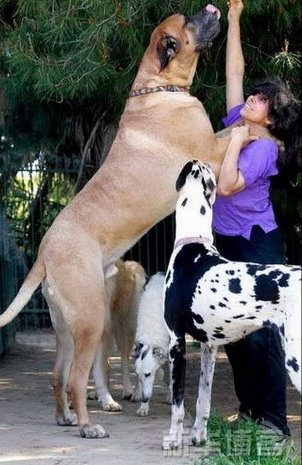 Na teh fotografijah so psi, ki za svojo neverjetno rast so v različnih obdobjih spadali v Guinnessovo knjigo rekordov, čeprav če poglejte si fotografije, vse zaslužijo tako visoko ocena. Samo, da si nekateri lastniki niso zastavili takšne naloge – presenetite svet s svojim čudovito velikim hišnim ljubljenčkom. Za mnoge njihova rast psi ne igrajo nobene vloge, saj sploh ljubijo hišne ljubljenčke sicer, čeprav se lahko včasih pohvalite z veliko rastjo …