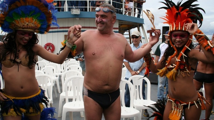 Med tem in številnimi drugimi vročinami ga je piranha napadla, krokodili, anakonde in celo razbojniki. Na enem mestu na Mississippiju v bojo, mimo katere je Strela pravkar plula, je udarila strela plavalca so vrgli v zrak in za nekaj časa je izgubil zavest. Ampak vsakič, ko je ta pogumni človek, kot pravijo, prišel suh voda …