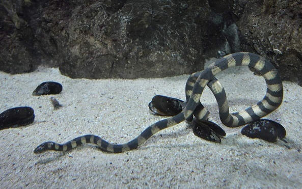 Zoologi trdijo, da so primeri napadov morskih kač na ljudje so izredno redki in če ne izzoveš plazilca, ona ni nevarnost. Še vedno zelo priporočljivo ljubitelji potapljanja pri srečanju s kačo, da se čim bolj oddaljijo od nje naslednji.