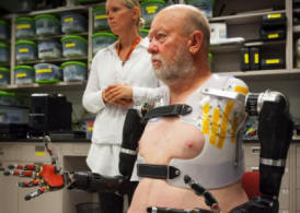 Fotografija iz odprtih virov Pred štiridesetimi leti je izgubil obe roki, ampak zdaj ima dva manipulatorja, ki ga nadzirajo misli. Za začeli so kirurško operacijo, katere bistvo je, kot jaz realizirano pri prepoznavanju živcev, ki so odgovorni za gibanje roke. Potem bolnika so prosili, naj razmišlja o gibanju roke in v tem času odčitani so bili signali iz živčnih končičev. Kot rezultat, vzorci signalov, odgovorni za določeno gibanje.