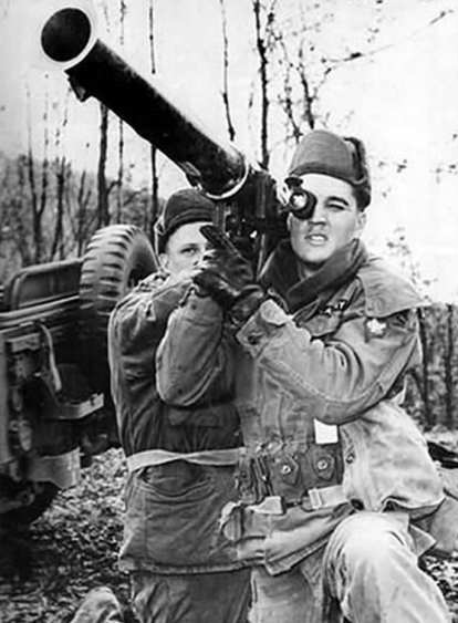 Фотоiz odprtih virov Elvis Presley z bazooko v ameriški vojski, 1958